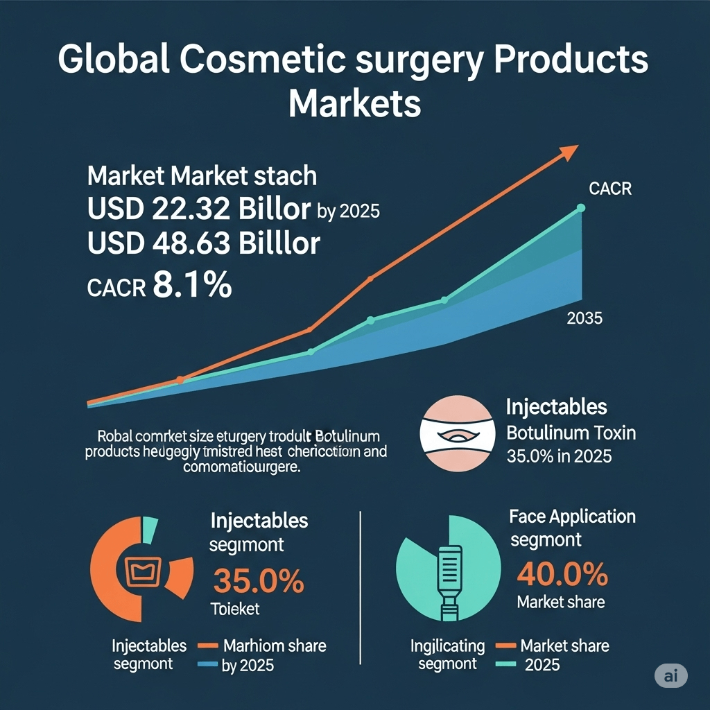 The cosmetic surgery products market is projected to grow from USD 22.32 billion in 2025 to USD 48.63 billion by 2035, expanding at a compound annual growth rate (CAGR) of 8.1% during the forecast period. The growth of this market is driven by the increasing acceptance of cosmetic surgery procedures, the rising disposable income, and …